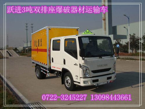 二、躍進3噸雙排座爆破器材運輸車:是采用南京汽車集團有限公司生產(chǎn)的NJ1071ZFDCMS型二類貨車底盤,搭載南京依維柯汽車有限公司生產(chǎn)的SOFIM8140.43D4柴油發(fā)動機,國四排放,發(fā)動機的排量為2798ml,功率為92kw;整車尺寸為5995*2040*2870(mm),貨廂尺寸為3100*1910*1800(mm),廂體容積為11立方,額定載質量為2960kg,駕駛室準乘人數(shù)為3+3人。