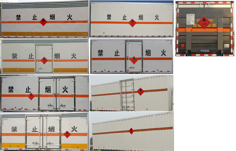 | 整車備注: | 隨底盤選裝駕駛室;廂體頂部封閉,不可開啟;運(yùn)輸具有獨(dú)立容器(瓶)包裝的:粘合劑,涂料,涂料溶液,煤油,苯,甲醇,乙醇,丙酮,甲苯,二甲苯,機(jī)油,類項號:3;該車為危險品危險車;廂體選裝瓦楞板結(jié)構(gòu),廂體側(cè)面選裝開門型式及位置或不帶側(cè)開門,選裝百葉窗,廂體顏色可變化,選裝液壓升降尾板(收起狀態(tài)水平長度為290mm);僅采用前輪盤式制動器,前置排氣管,子午線輪胎,限速裝置的底盤,限速80km/h;該車安裝具有衛(wèi)星定位功能的行駛記錄儀;ABS廠家及型號:襄陽東風(fēng)隆誠機(jī)械有限責(zé)任公司/ABS/ASR-24V-4S/4M;側(cè)面防護(hù)及后下部防護(hù)裝置材料材質(zhì):Q235,連接方式:焊接加螺栓連接;后下部防護(hù)裝置斷面尺寸(寬×高):40×100(mm),離地高度:490mm. | ||